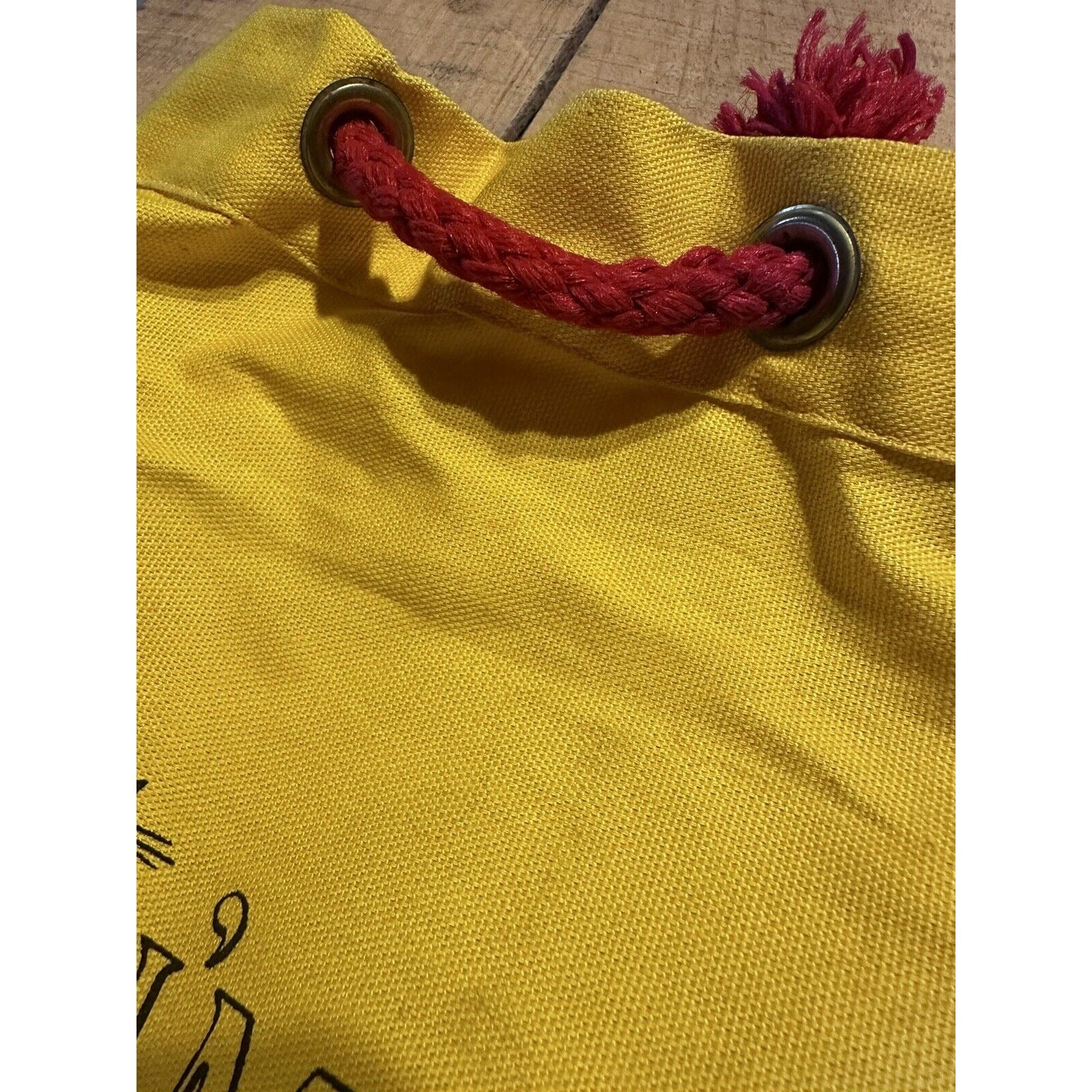 This vintage cocktail bag from the 60s features the Pussycat branding. It is made of canvas material red rope and is an original piece.
