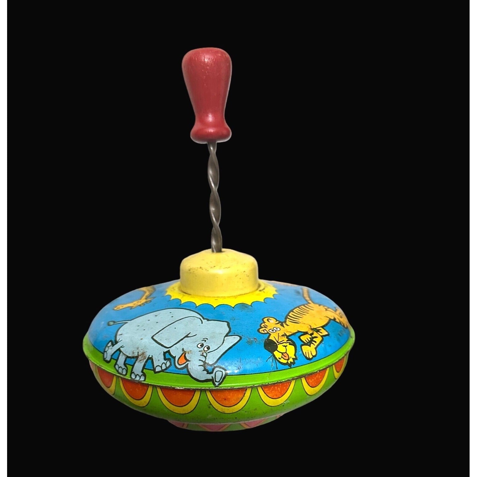 Animal Themed Tin Spinning Top Toy Ohio Art Vintage