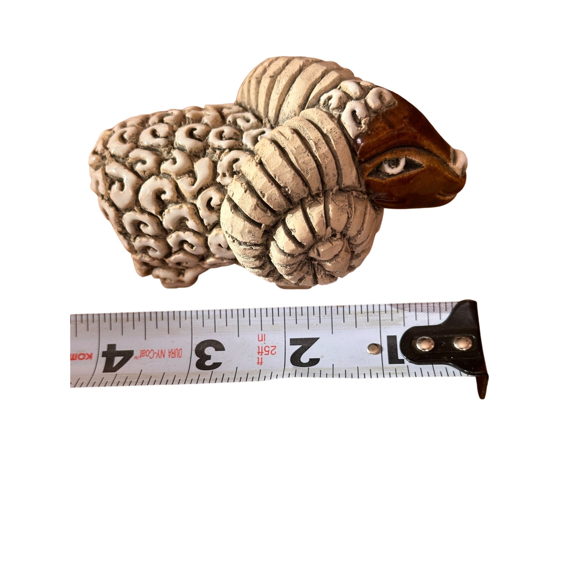 Vintage Artesiana Rinconada Ram Horn Goat Sheep Signed This sheep figurine is more decorative than your average barnyard resident. Handcrafted from ceramic, it weighs less than a woolly secret and measures just shy of 5 inches.