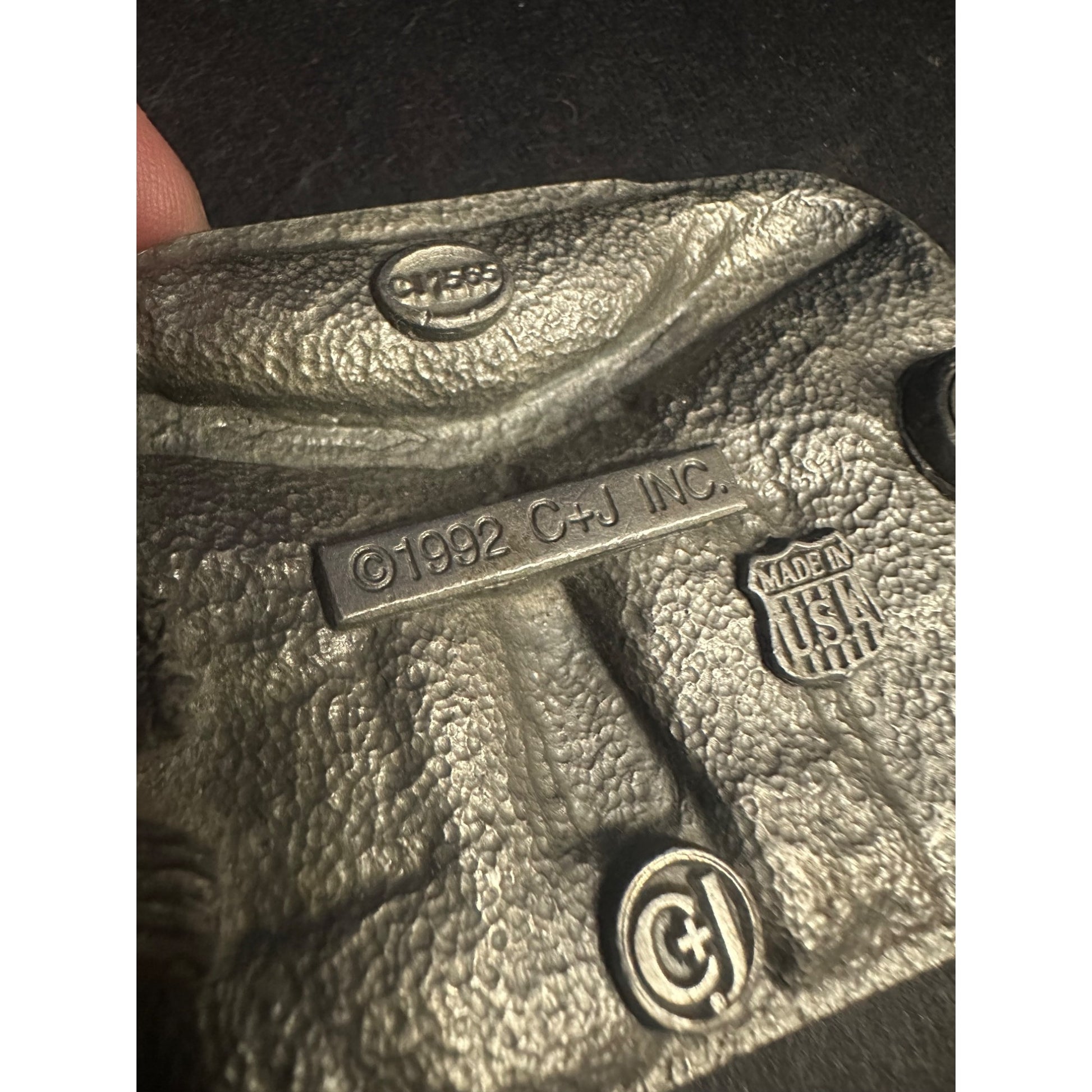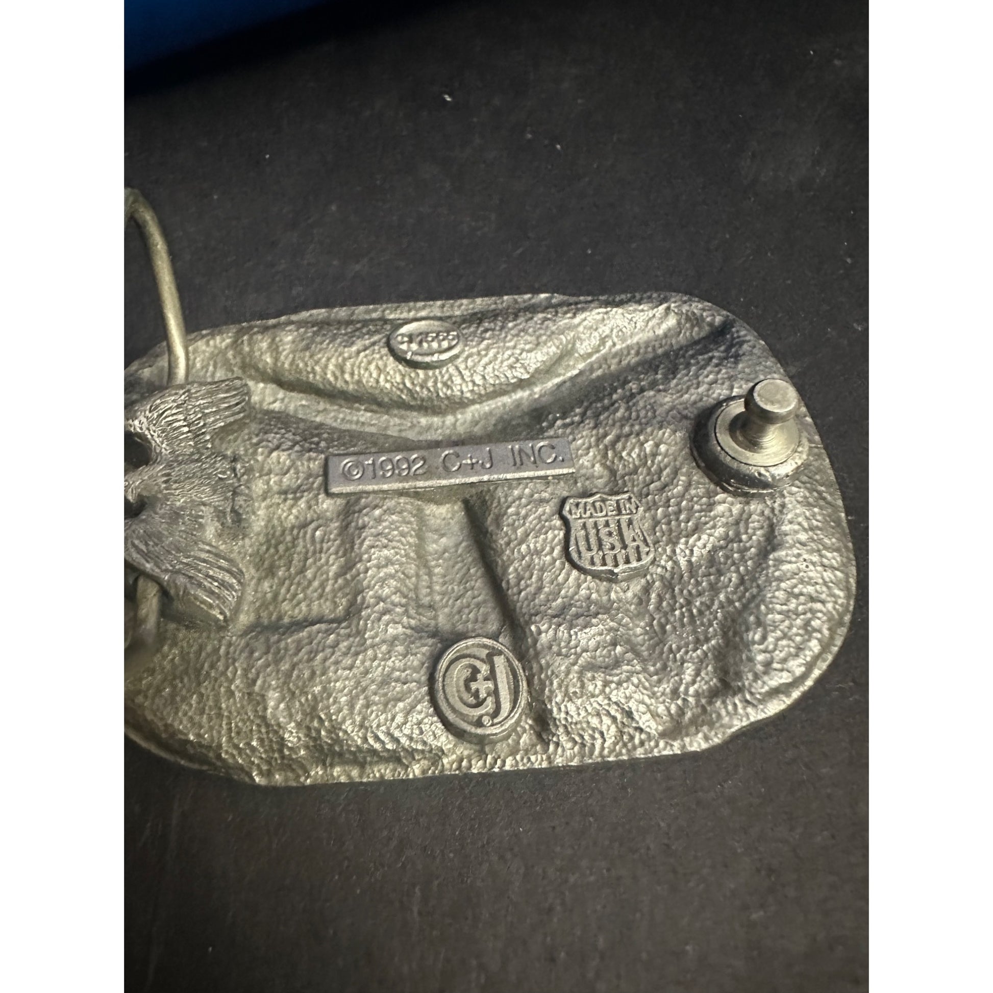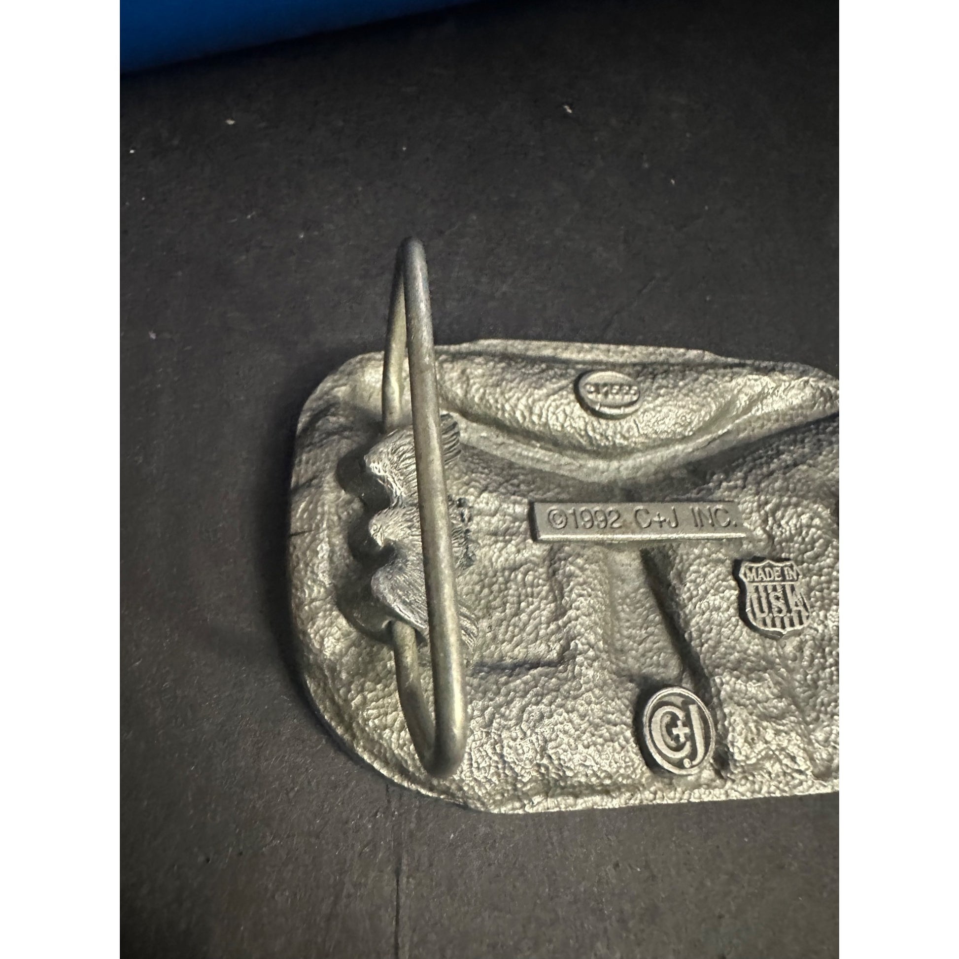 This vintage belt buckle, crafted in 1992 by C+J Inc., serves as a poignant tribute to the men and women who served in the Vietnam War. With intricate detailing and a robust build, it captures the essence of remembrance and honor, making it a meaningful collectible for history enthusiasts and veterans alike.