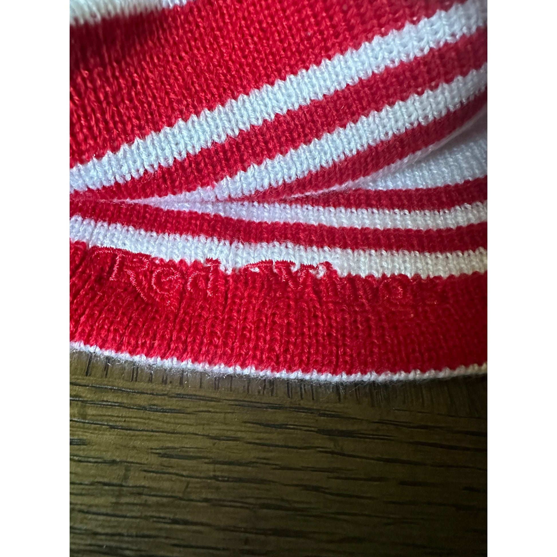 Detroit Red Wings Knit Beanie Hat Red & White Stripes Logo Embroidery Adult Size