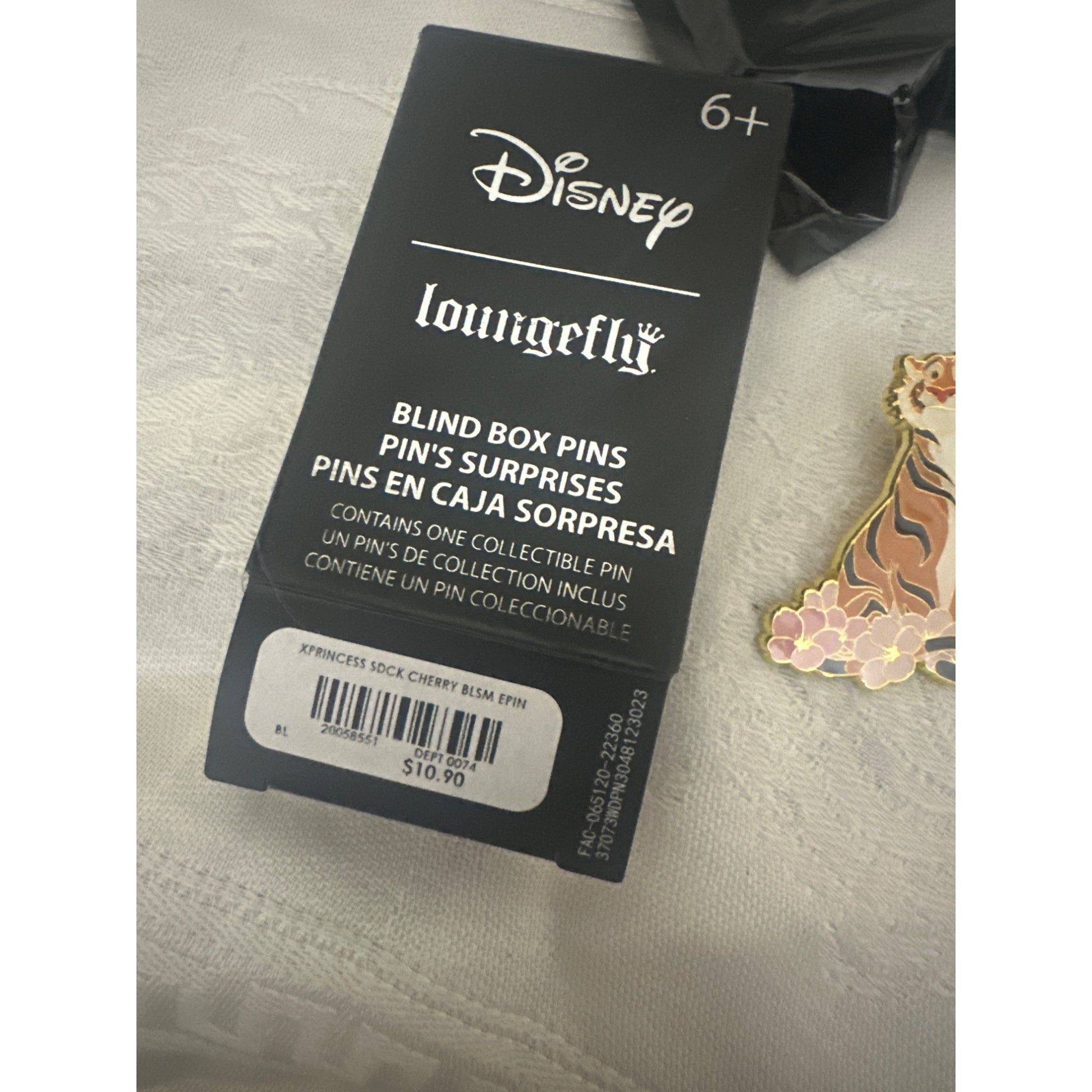 This Loungefly Disney pin features Rajah, Jasmine's loyal tiger, surrounded by cherry blossoms. A delightful collectible for any Disney or Aladdin enthusiast.