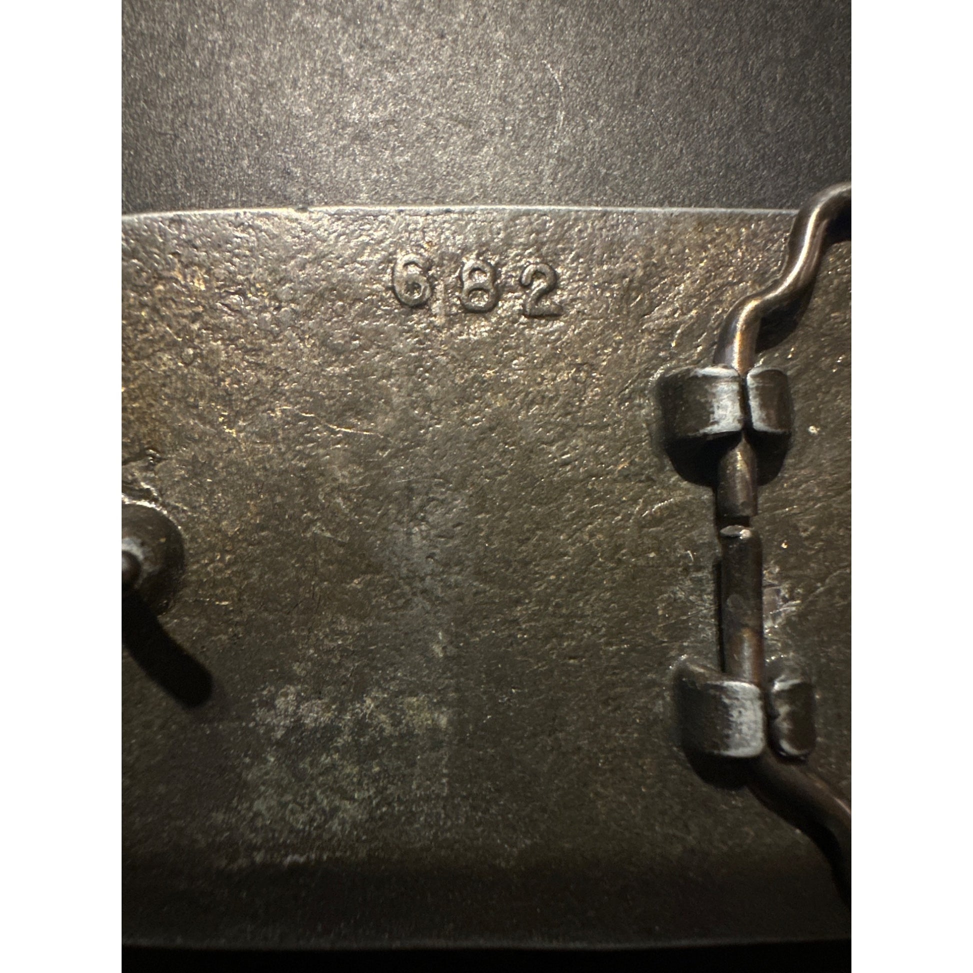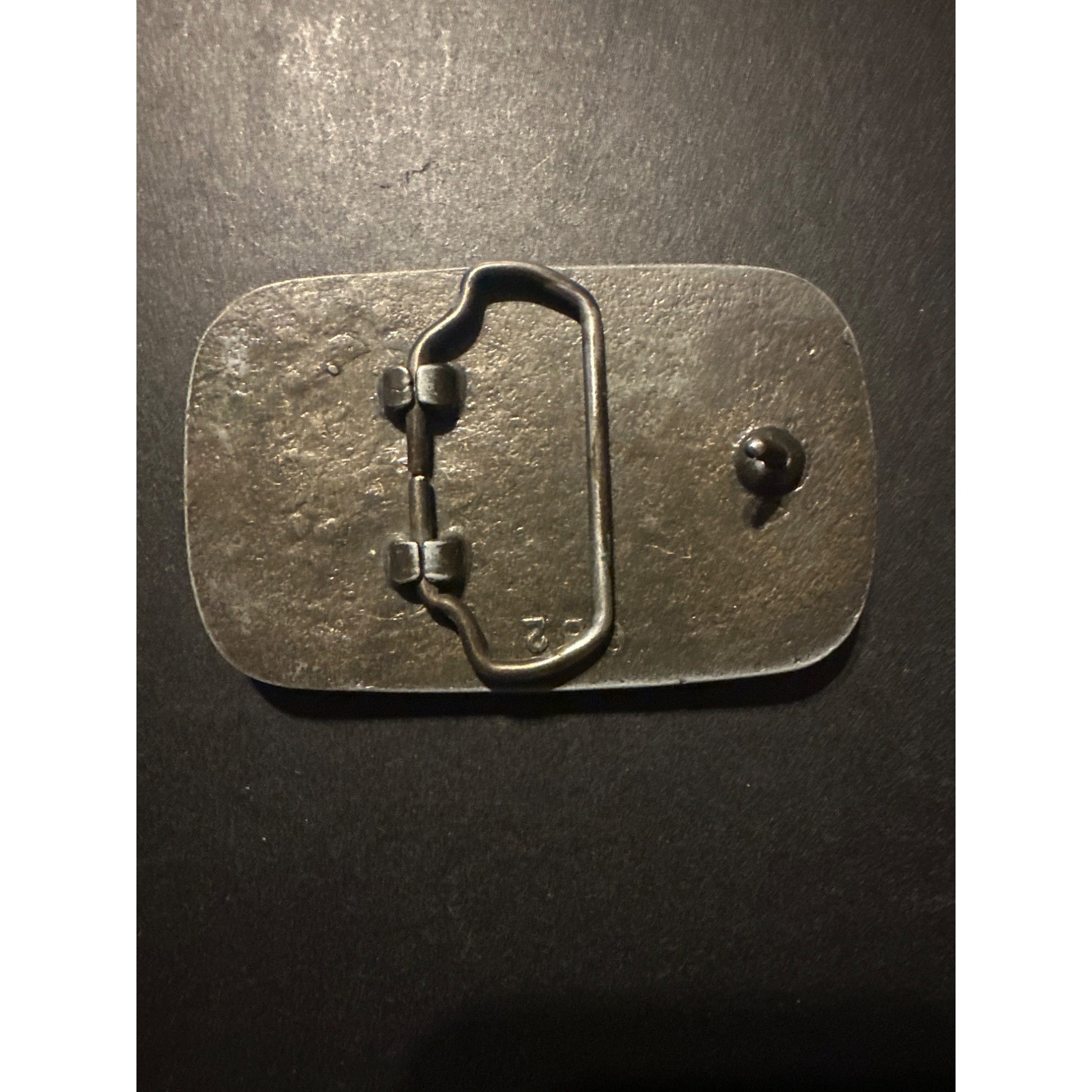 Minor surface wear on metal, slight patina on back. Top to bottom = 2.5 inches, side to side = 3.5 inches.