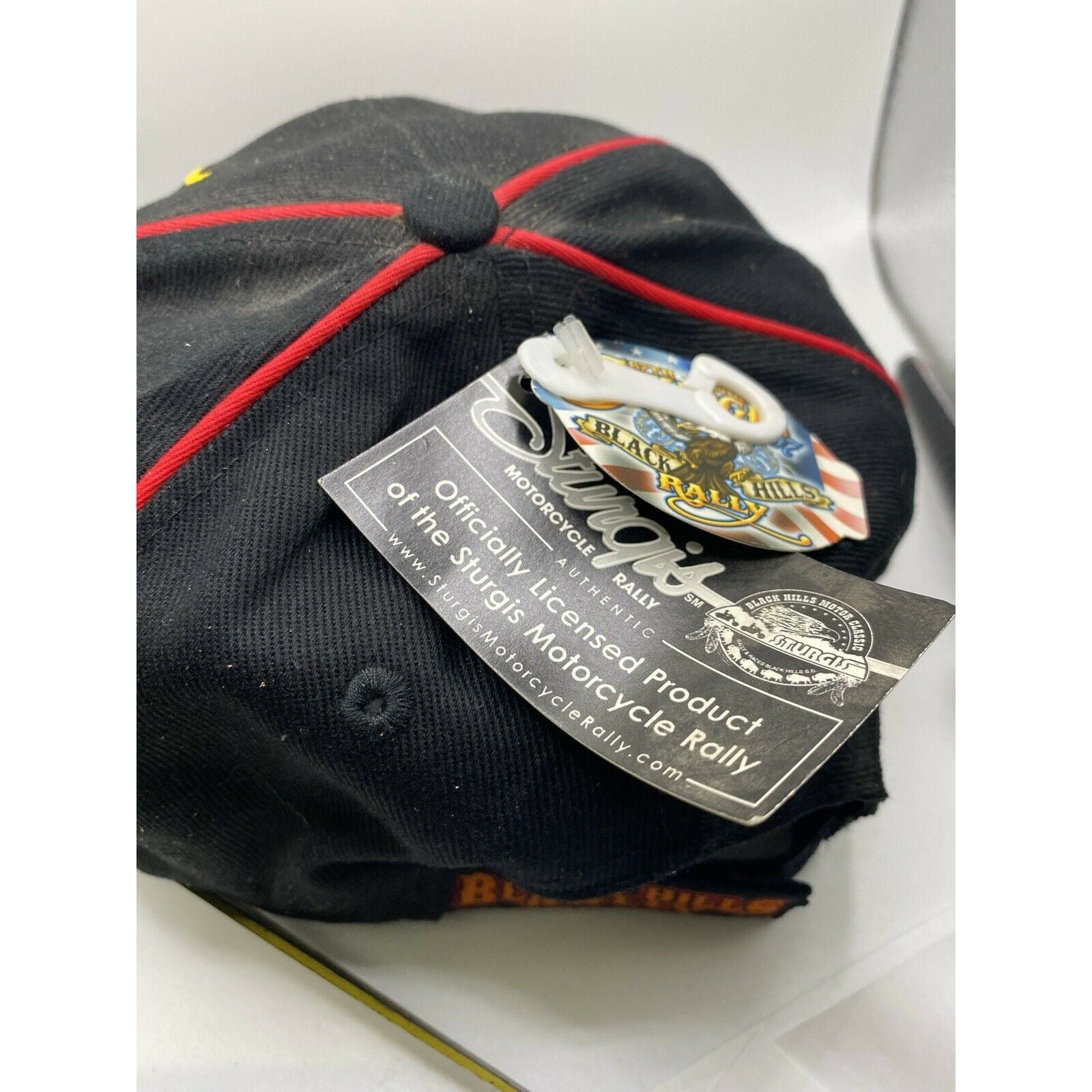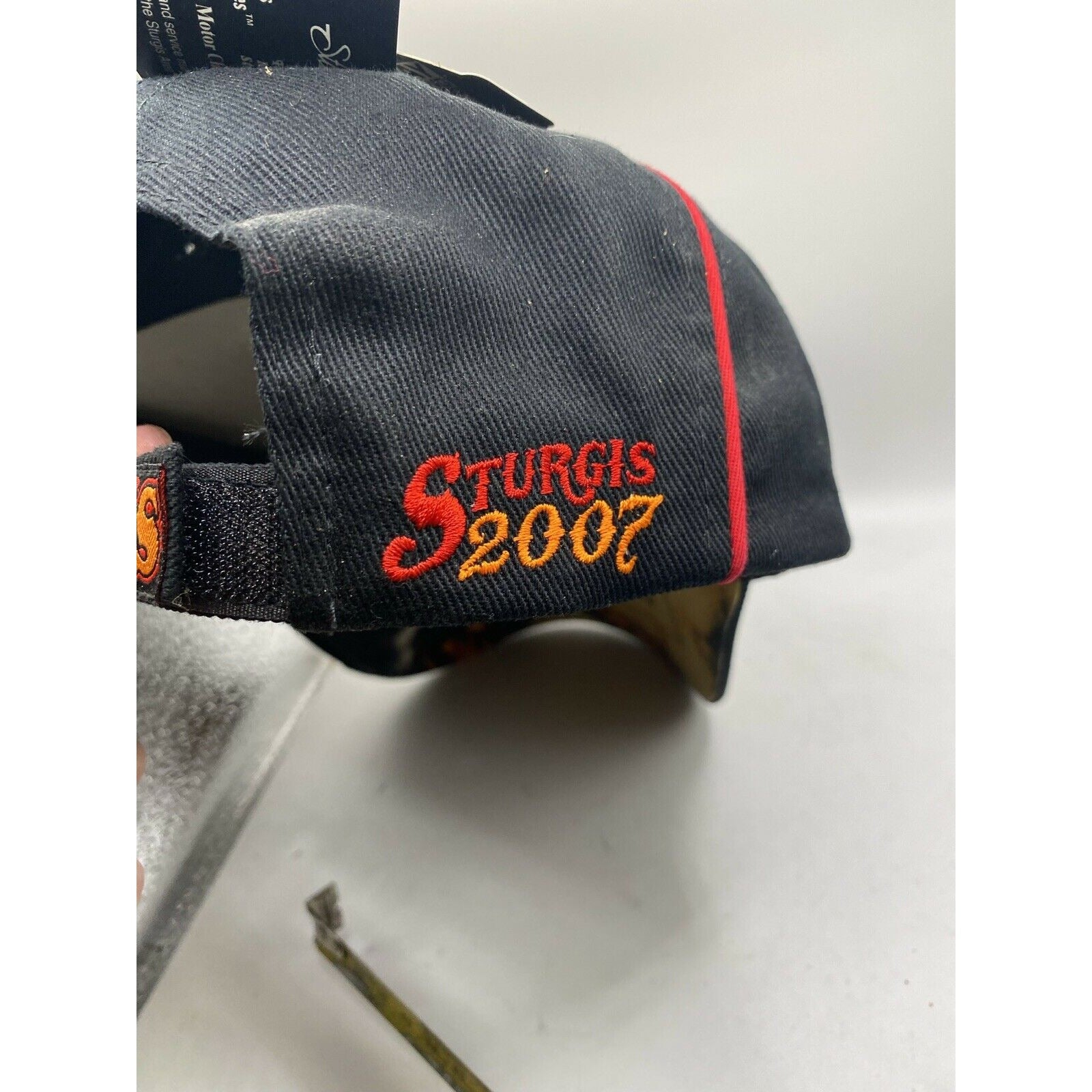 Discover the hidden treasure that is the Flames Skull Cowboy Hat Sturgis 2007 rally 67th annual Rally adjustable hat NWT. This item is new with all tags and even though it may be a little dusty, it is in mint condition. The intricate embroidery of the black hills rally 2007 67th annual rally sturgis along with the image of a skeleton head wearing a flaming cowboy hat is absolutely badass! And don't forget to check out the additional views and measurements by scrolling through the photos. Don't miss out on this one-of-a-kind piece!.