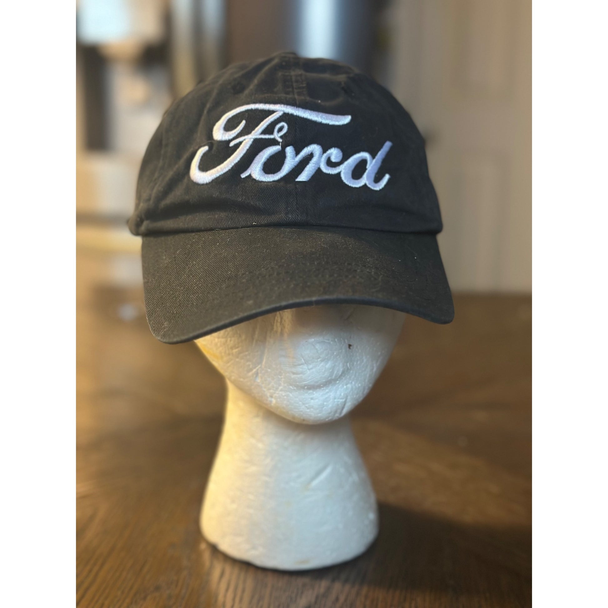 Stylish Ford logo on a black cotton cap, designed with an adjustable strap for a comfortable fit.