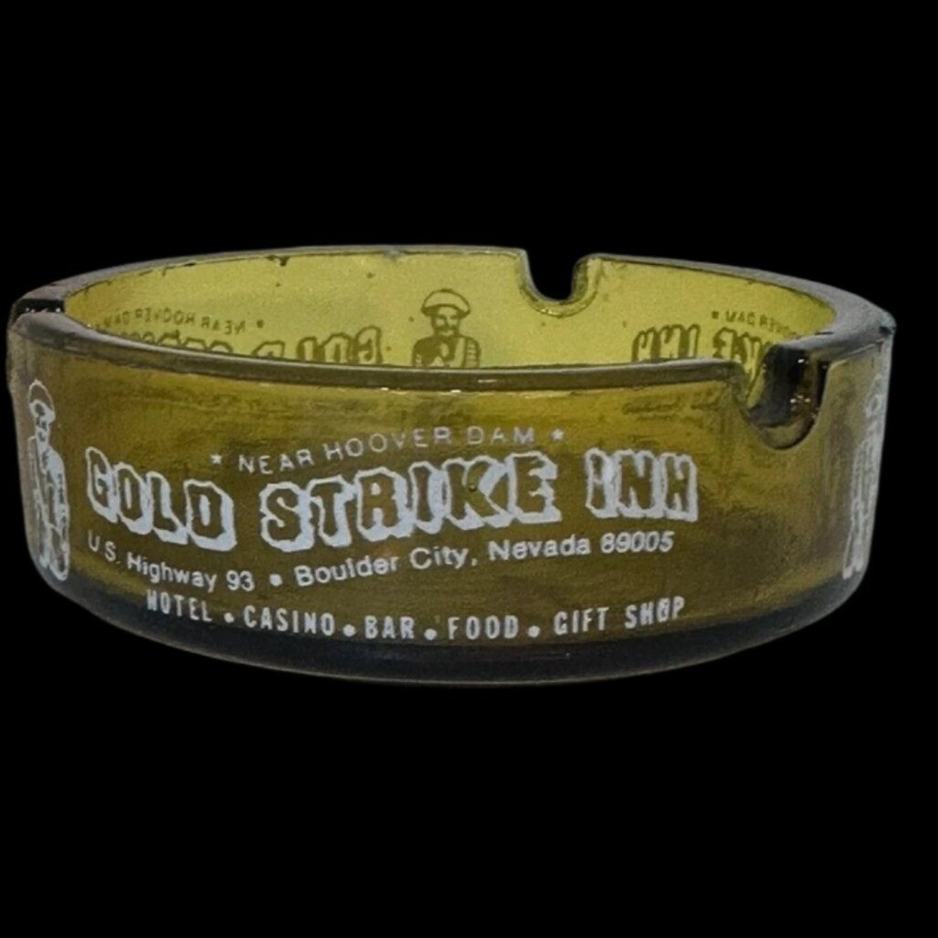 Gold Strike Inn Amber Round Cigarette Cigar Ashtray Boulder City Nevada Hoover
