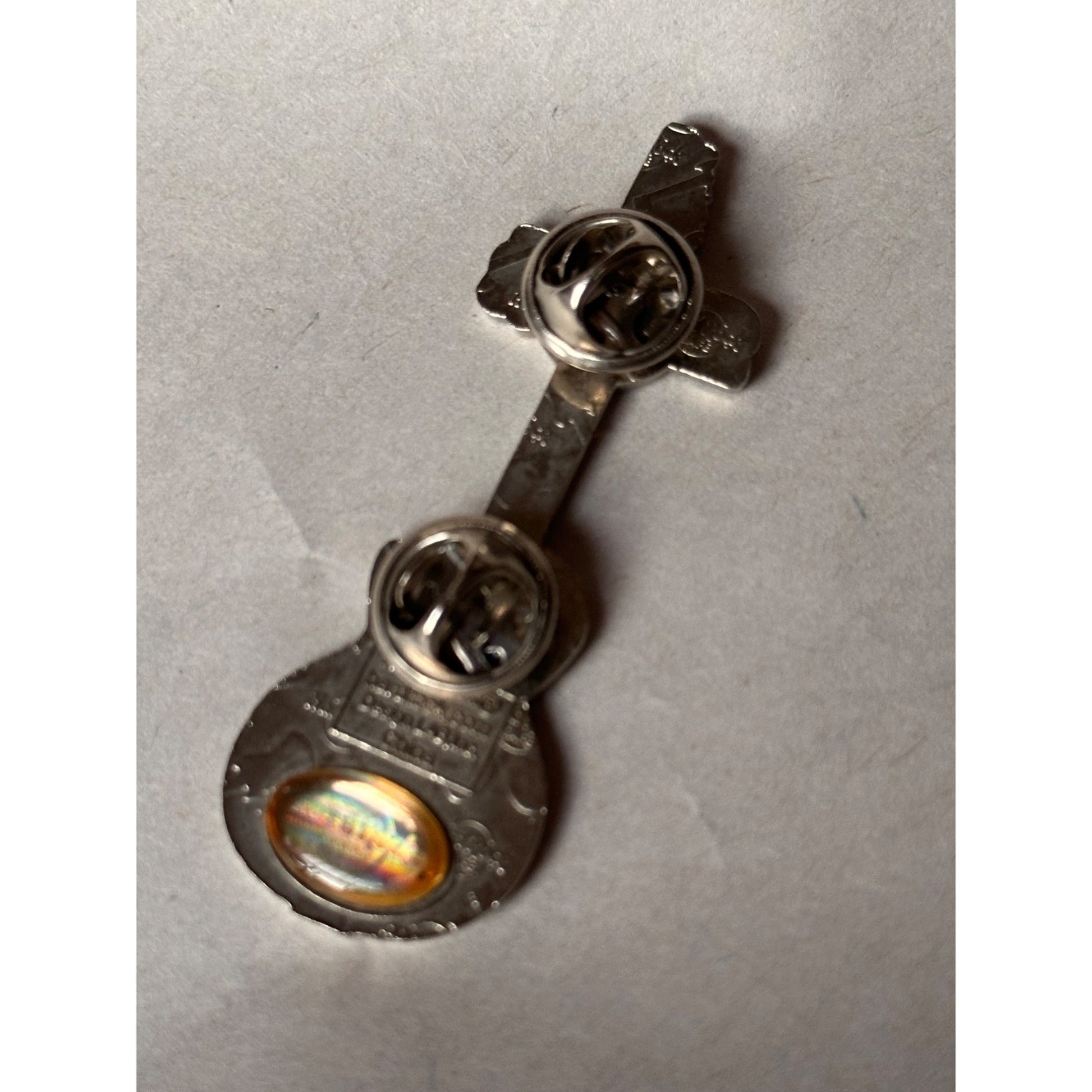 This guitar-shaped pin from Hard Rock Cafe is a unique collectible item for music enthusiasts. Featuring intricate design details and a secure pin back, it symbolizes love for music and the iconic Hard Rock brand.