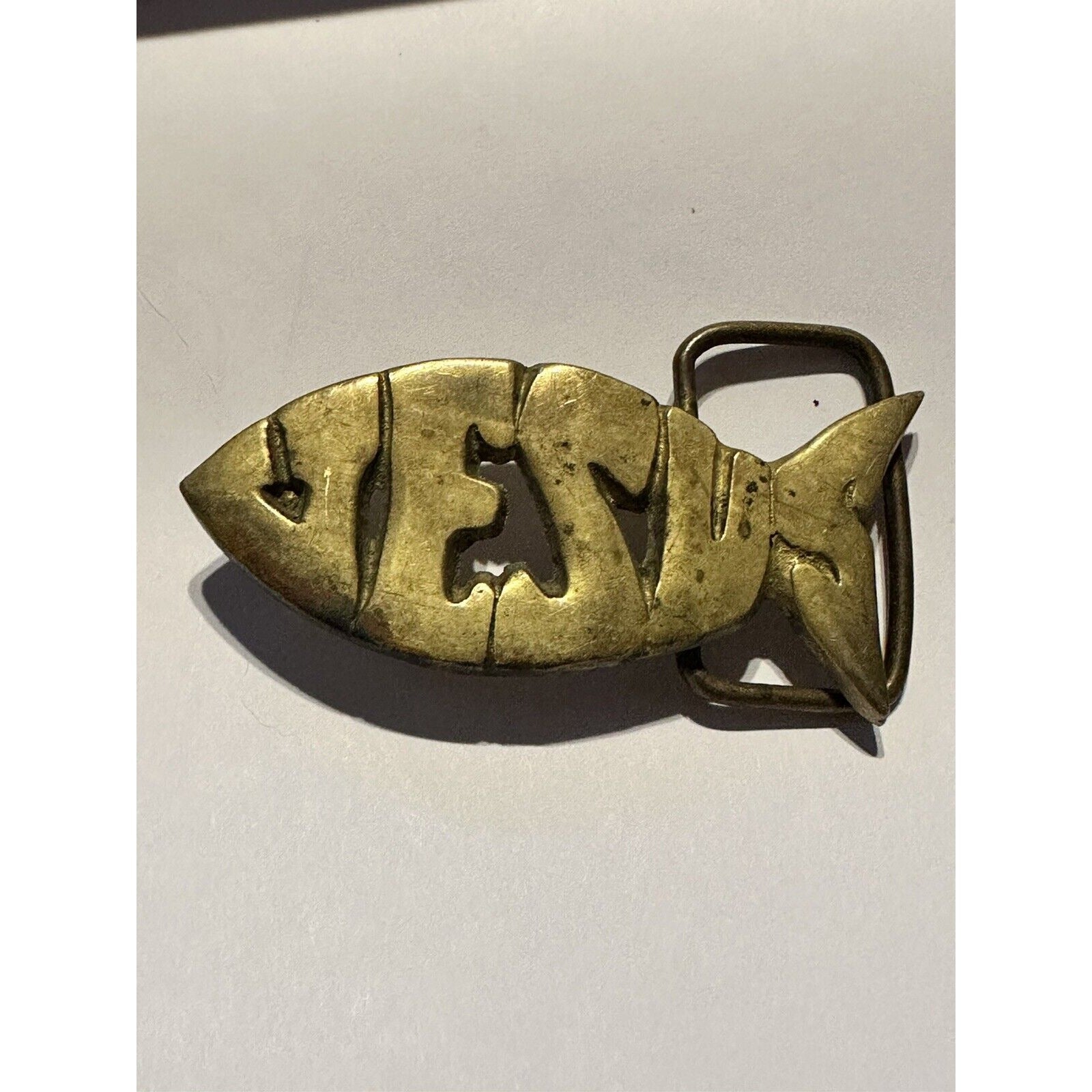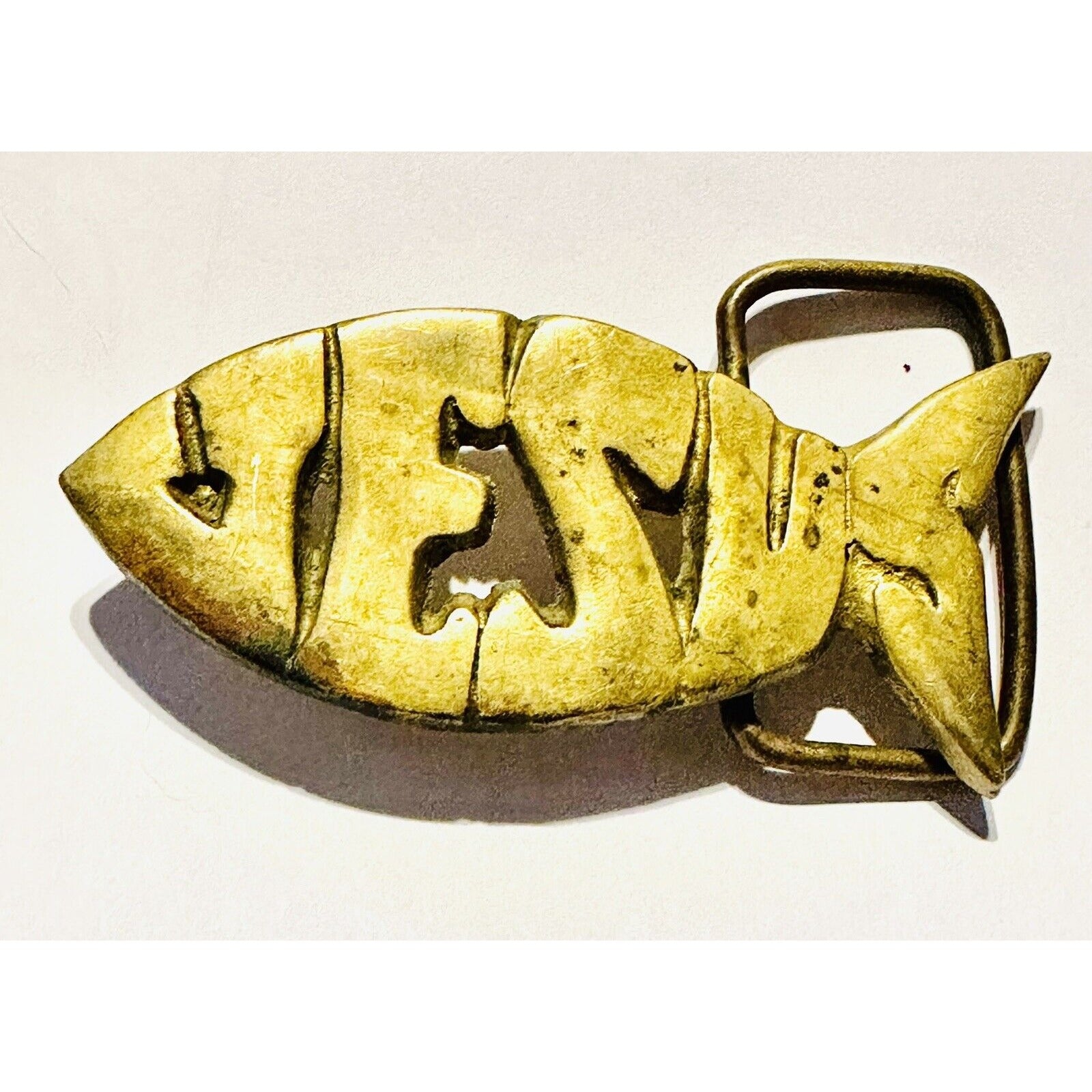 Jesus Christian Fish Symbol Statement Solid Brass Belt Buckle.