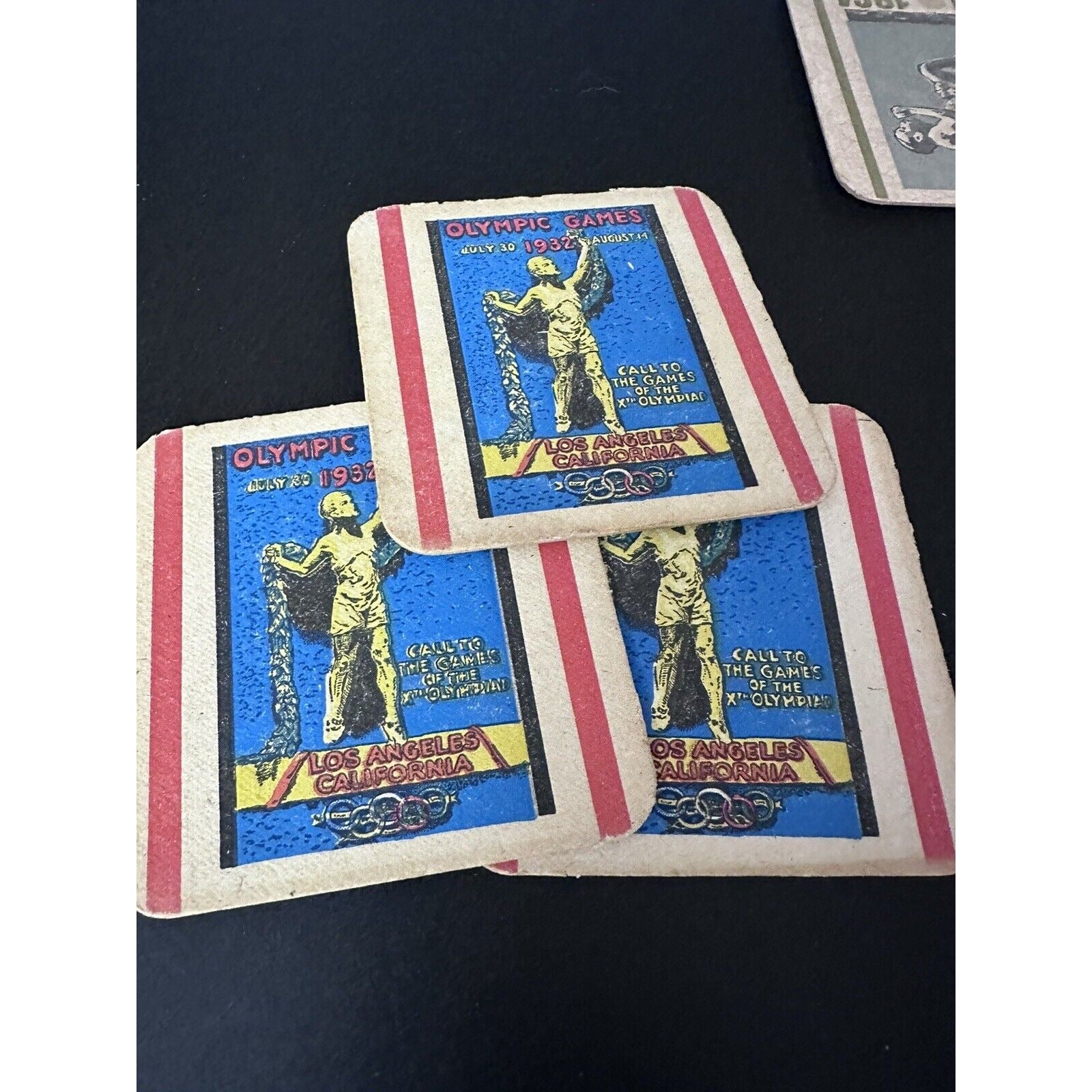 One coaster has blurry print, please view the photos This vintage set of three coasters is a true collector's item for sports fans and history enthusiasts alike. These coasters were produced in July 1932 during the Olympic Games in Los Angeles, California, and feature the iconic logo of the event. The design captures the spirit of the games and the energy of the city, making these coasters a unique piece of memorabilia.