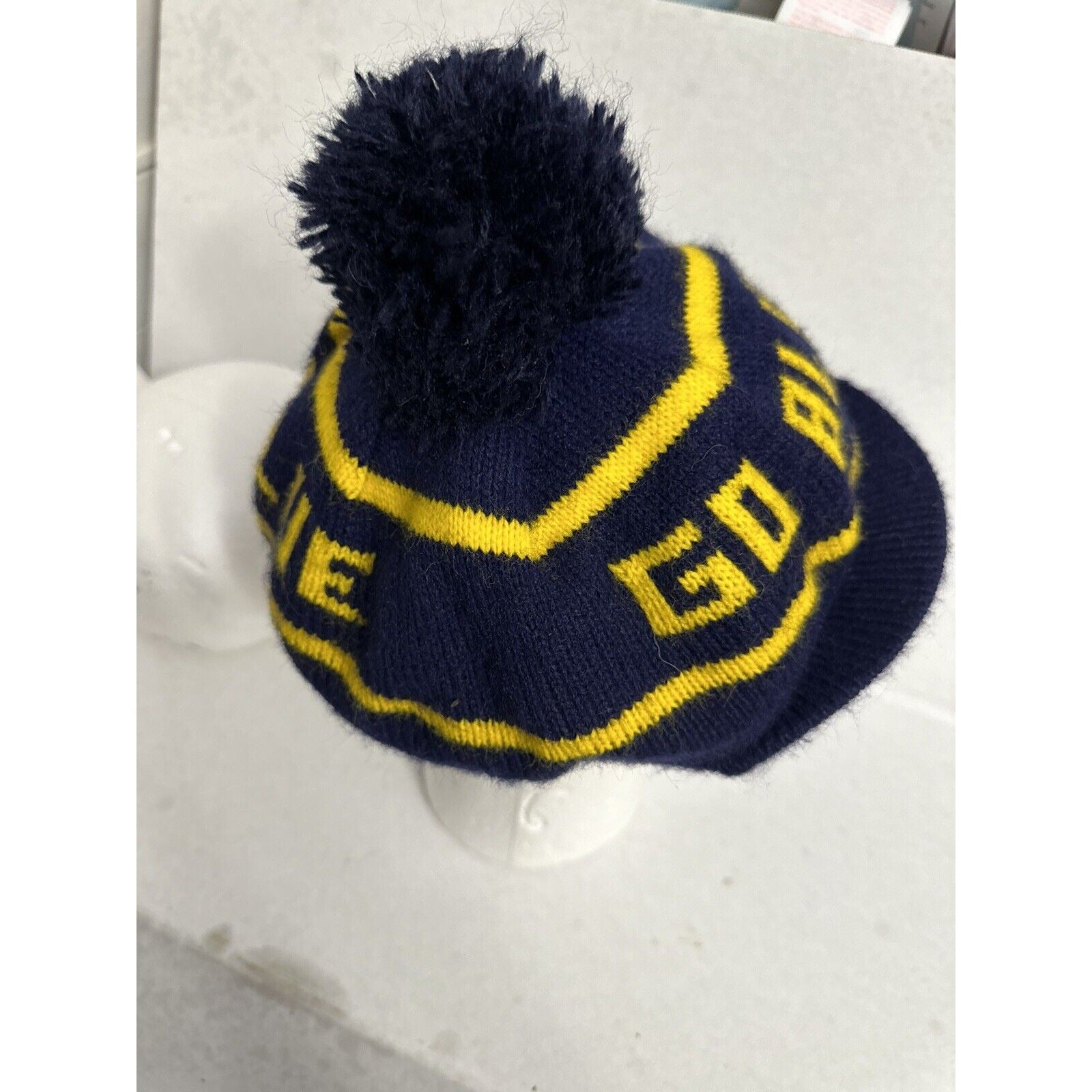 Michigan Wolverines Go Blue Gold Acrylic Pompom Beanie Beret Winter Hat Cap