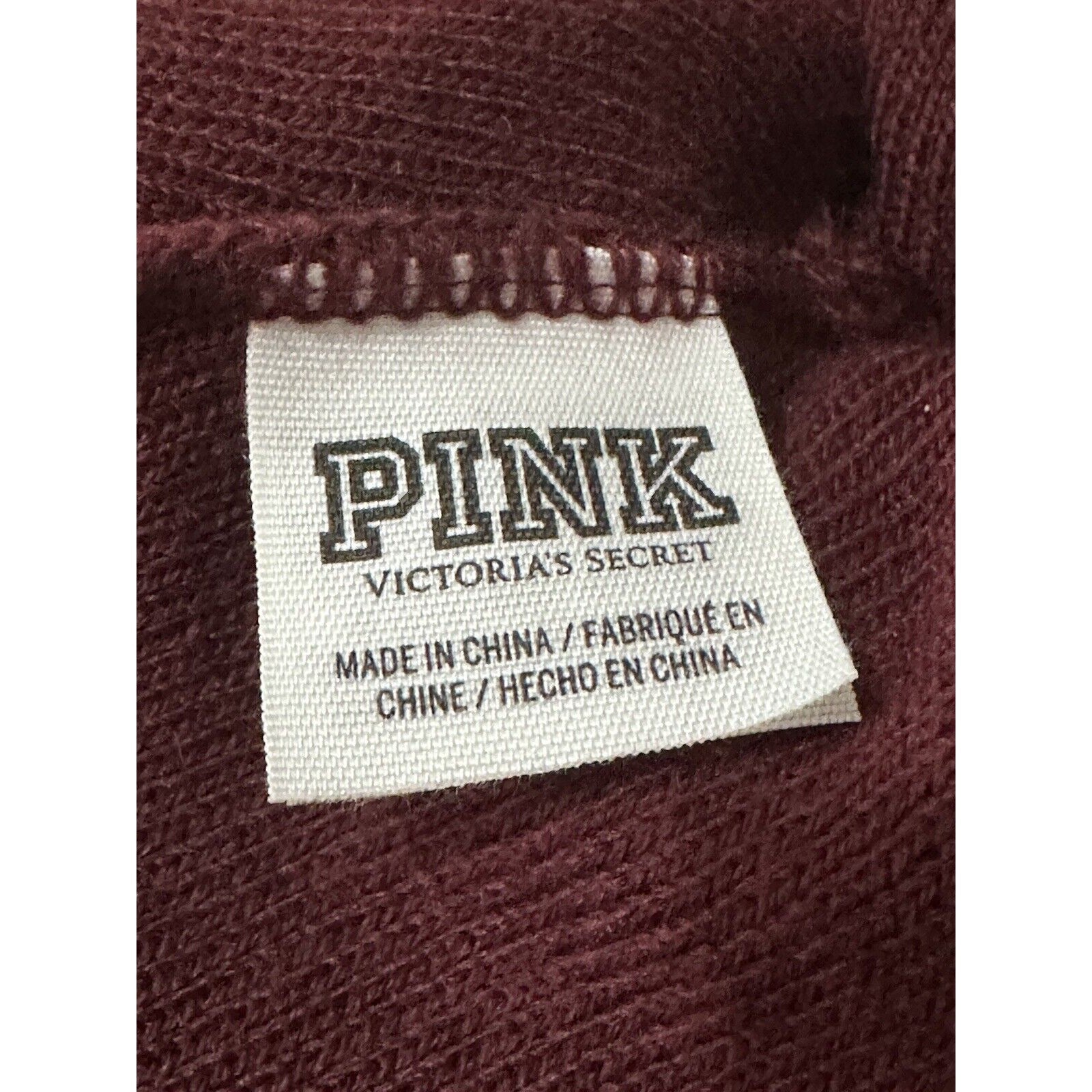 PINK Victoria's Secret Beanie Pom Pom Hat Knit Cap Burgundy & White One Size.