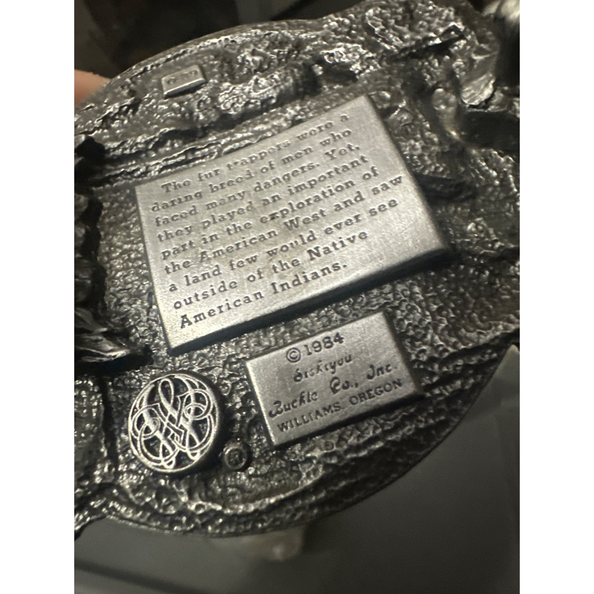 Siskiyou Belt Buckle Mountain Man fur trapper Scene Pewter Western 1984