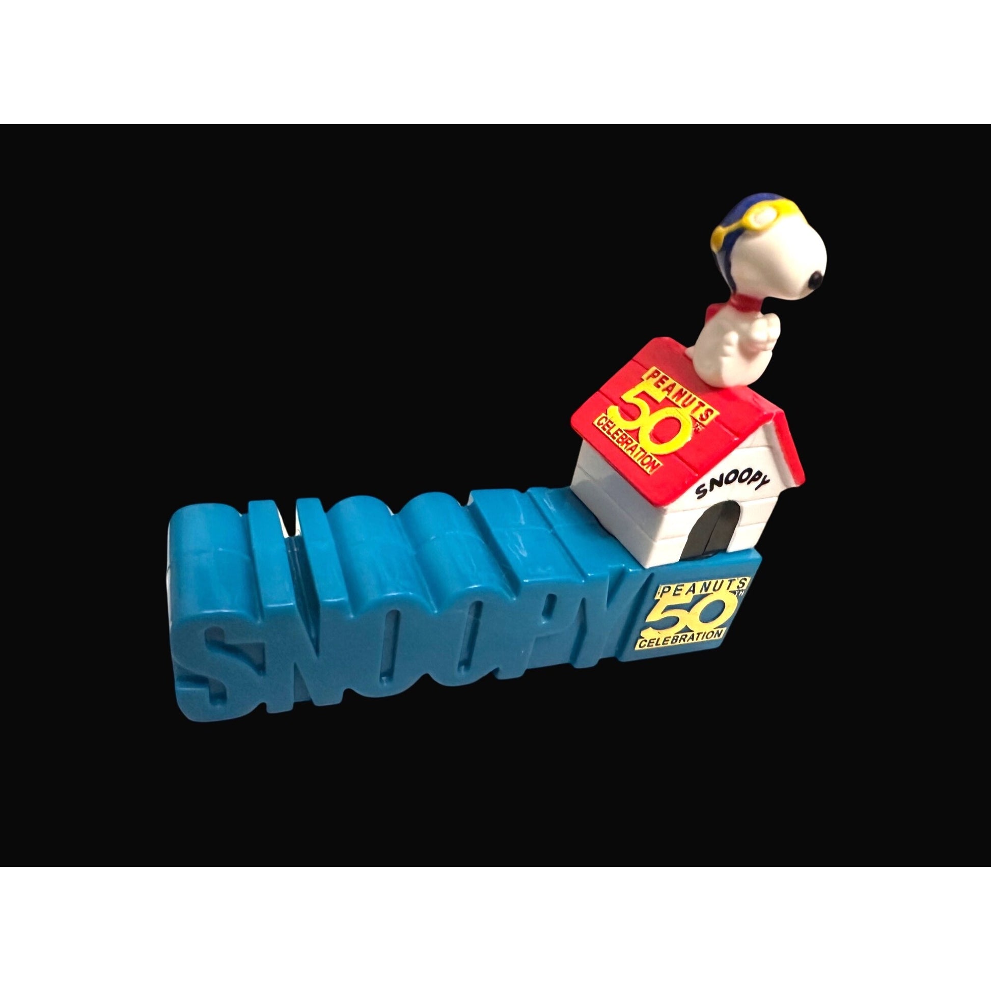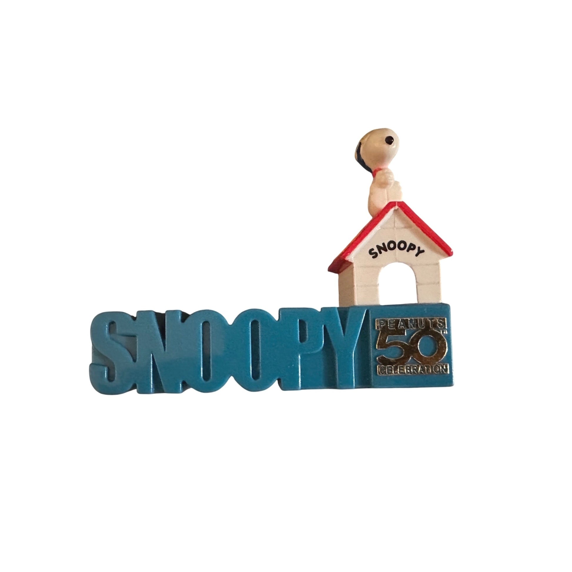 Celebrate 50 years of Peanuts with this charming Snoopy figurine. Made of durable plastic, it's a nostalgic collectible for Peanuts fans.