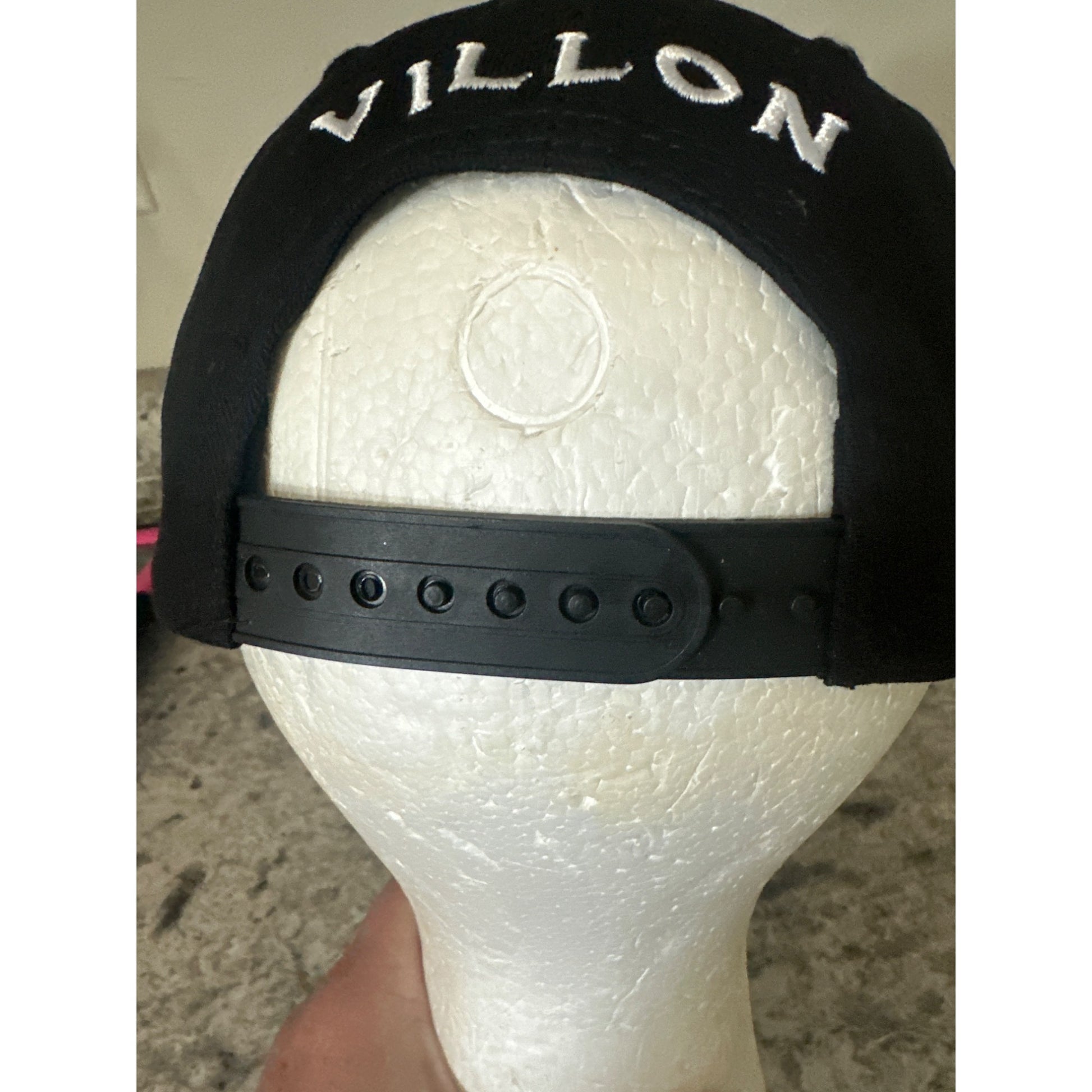 The Villon snapback cap showcases a bold embroidered logo, offering a sleek addition to casual outfits. Its adjustable strap ensures a comfortable fit.