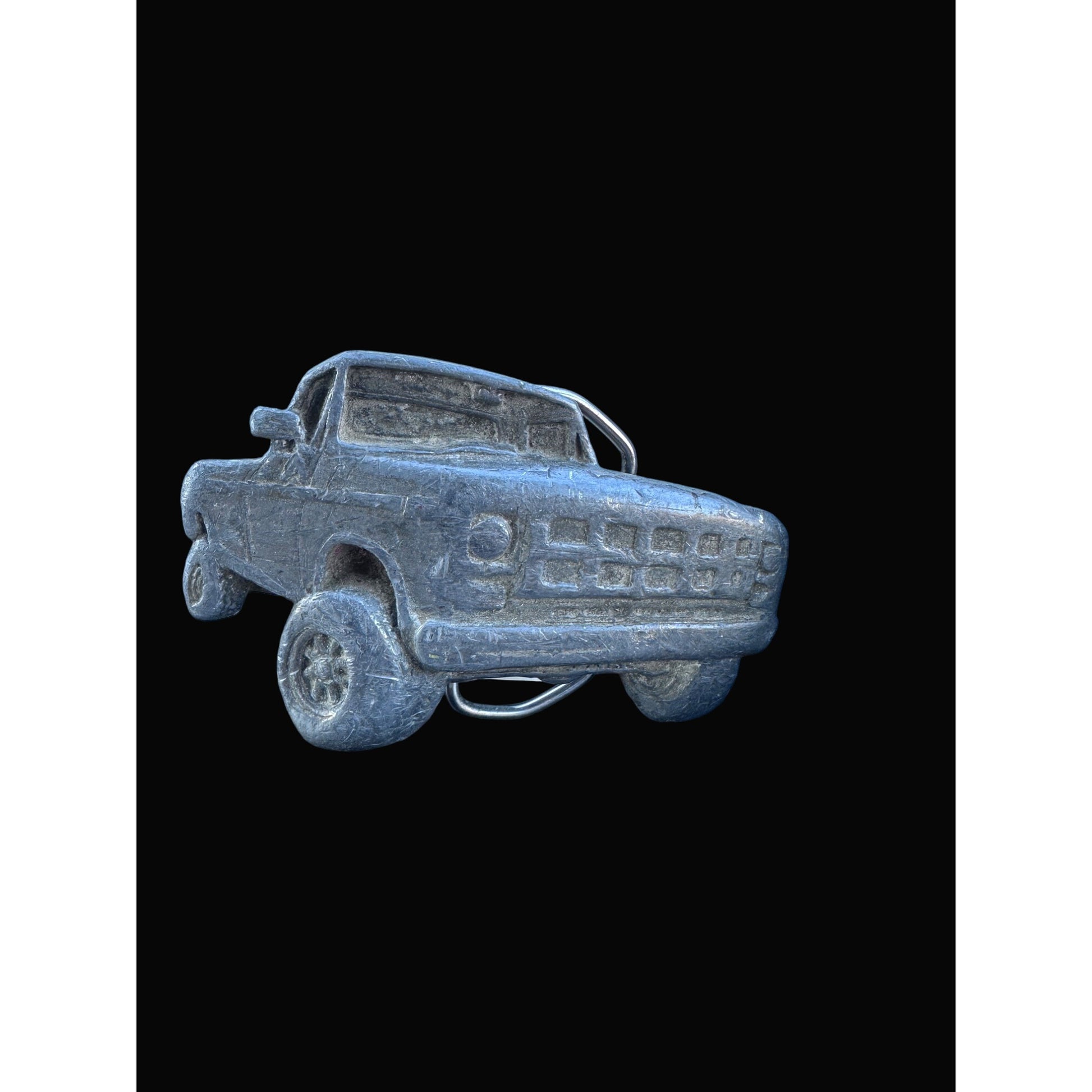 This belt buckle is so retro it could double as a time machine. A blast from the past to hold up your present-day jeans with style. The truck won't haul anything, except compliments.