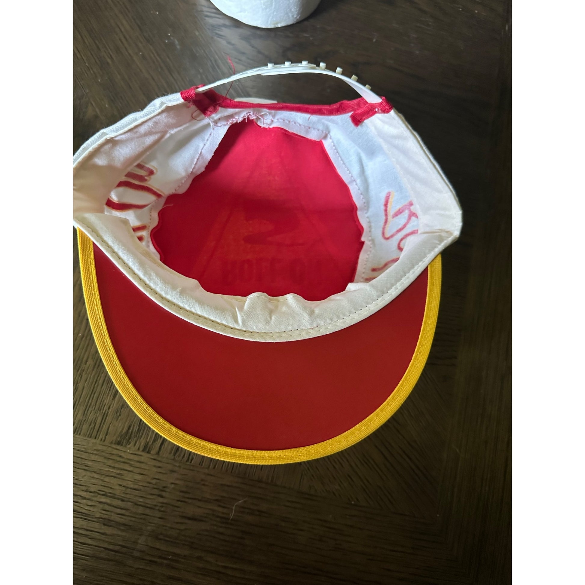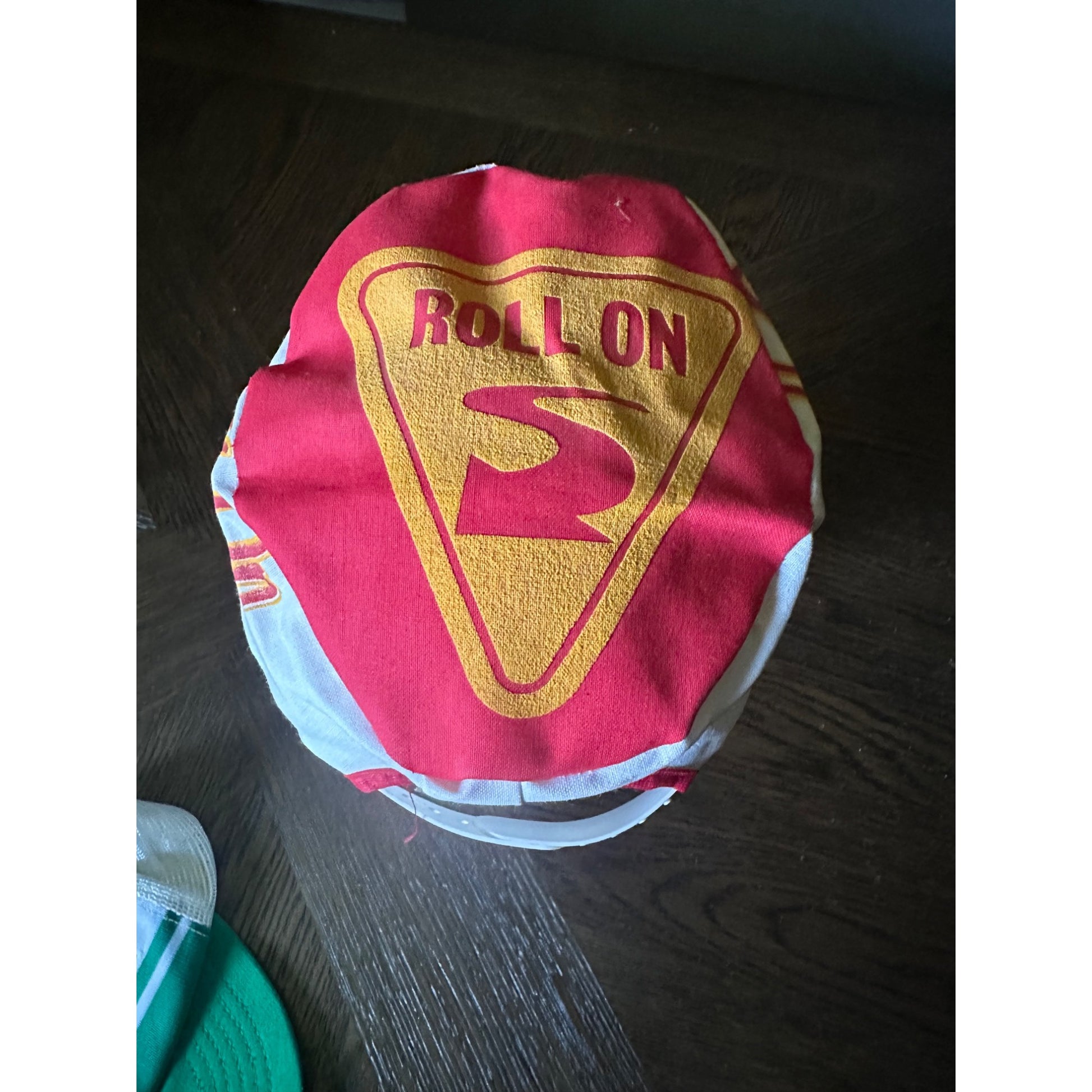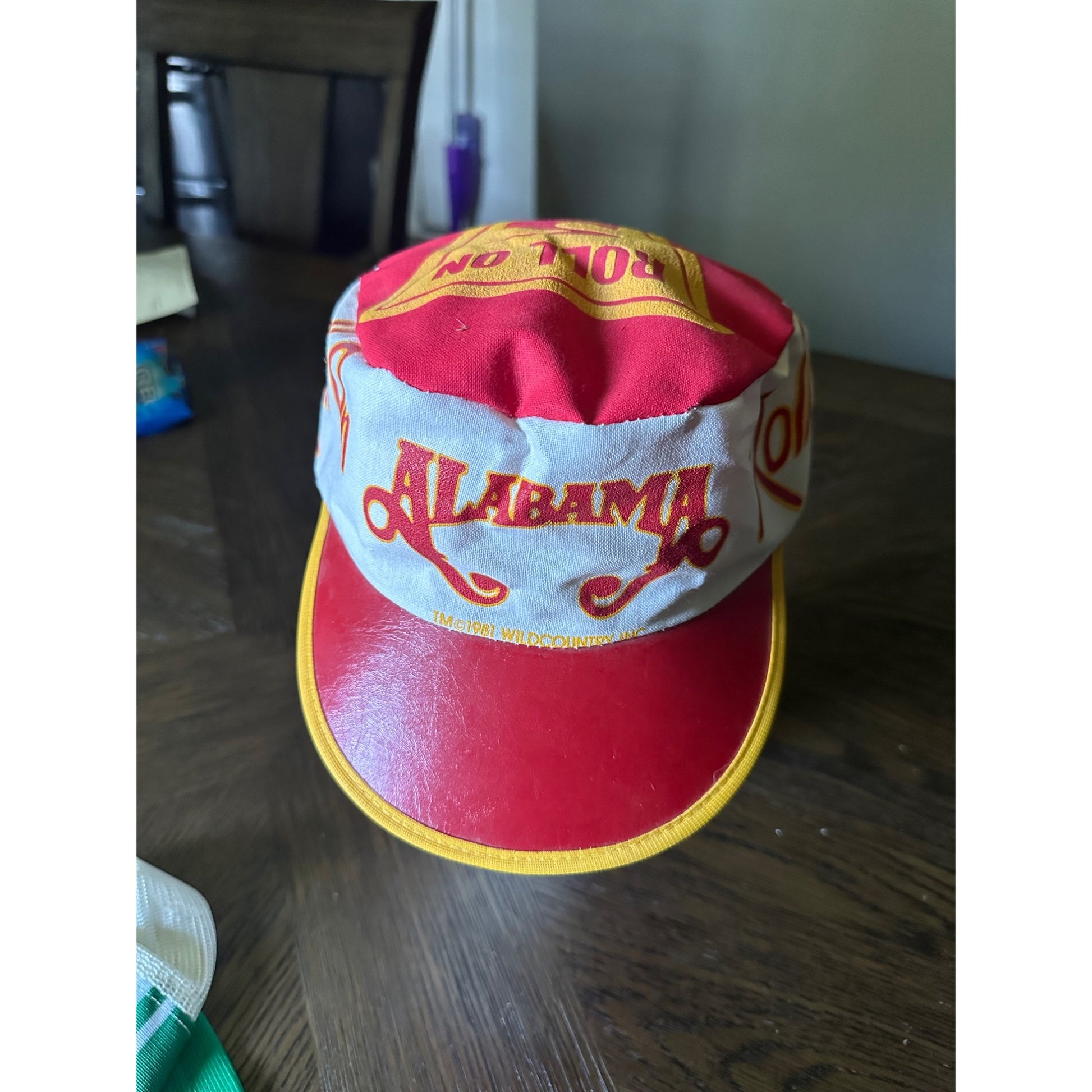 This vintage 1981 Alabama Roll On snapback hat is a rare collector's item, featuring vibrant red and yellow colors and a bold design.