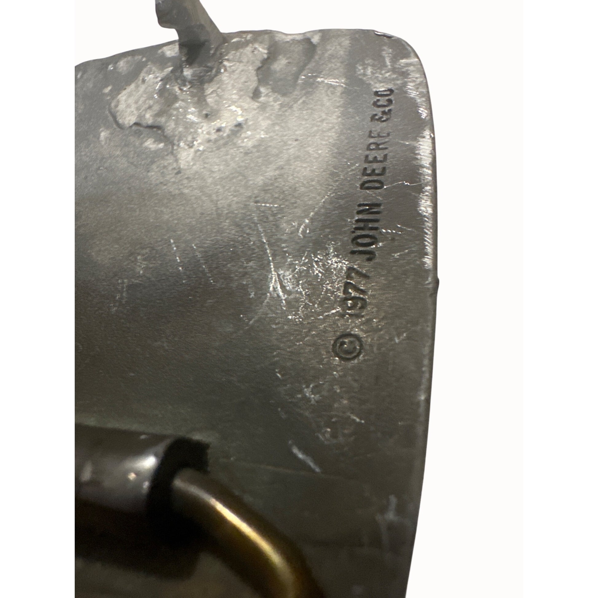 John Deere Tractor Belt Buckle 1977 Metal Silver
